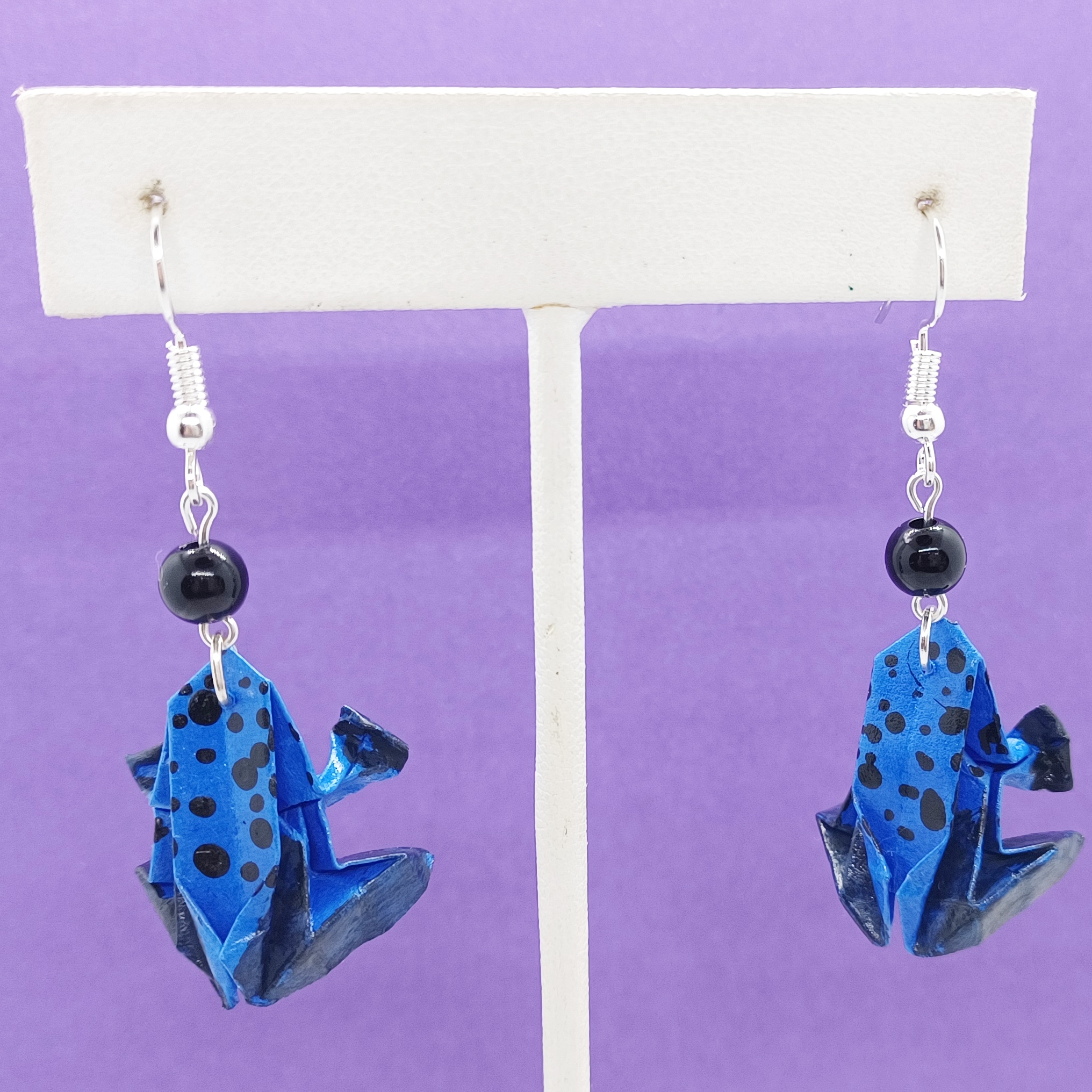 Origami Frog earrings. Hand-folded and treated with a sealant or varnish to make them more durable and water resistant.