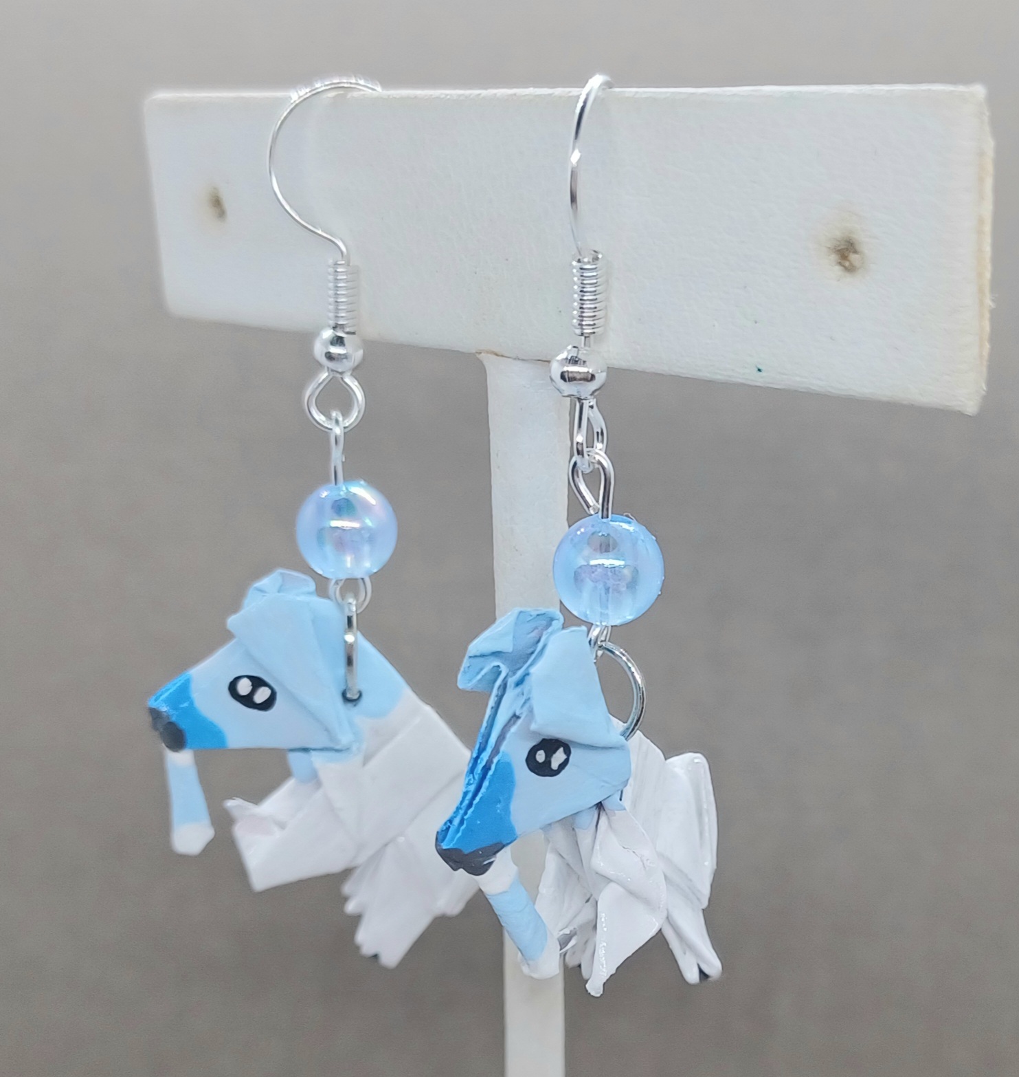 Origami cubchoo earrings. Hand-folded and treated with a sealant or varnish to make them more durable and water resistant.