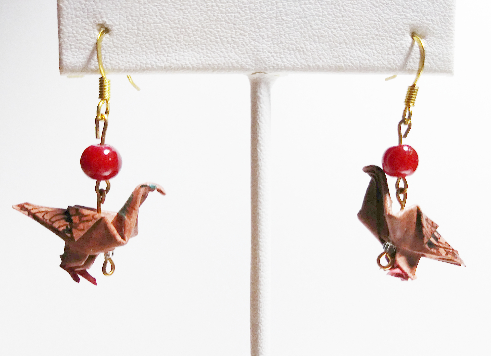Origami Dove earrings. Hand-folded and treated with a sealant or varnish to make them more durable and water resistant.