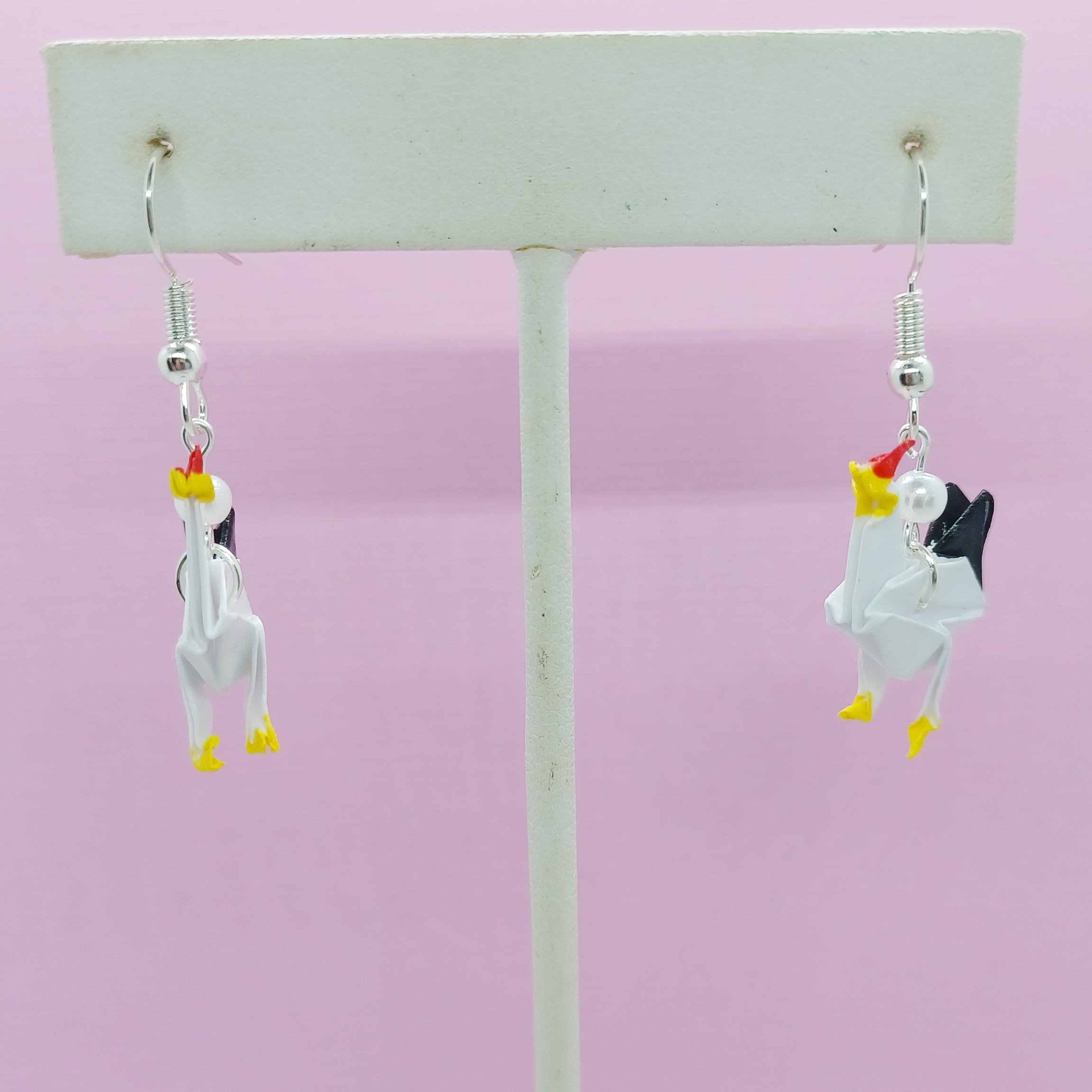 Origami Chicken earrings. Hand-folded and treated with a sealant or varnish to make them more durable and water resistant.