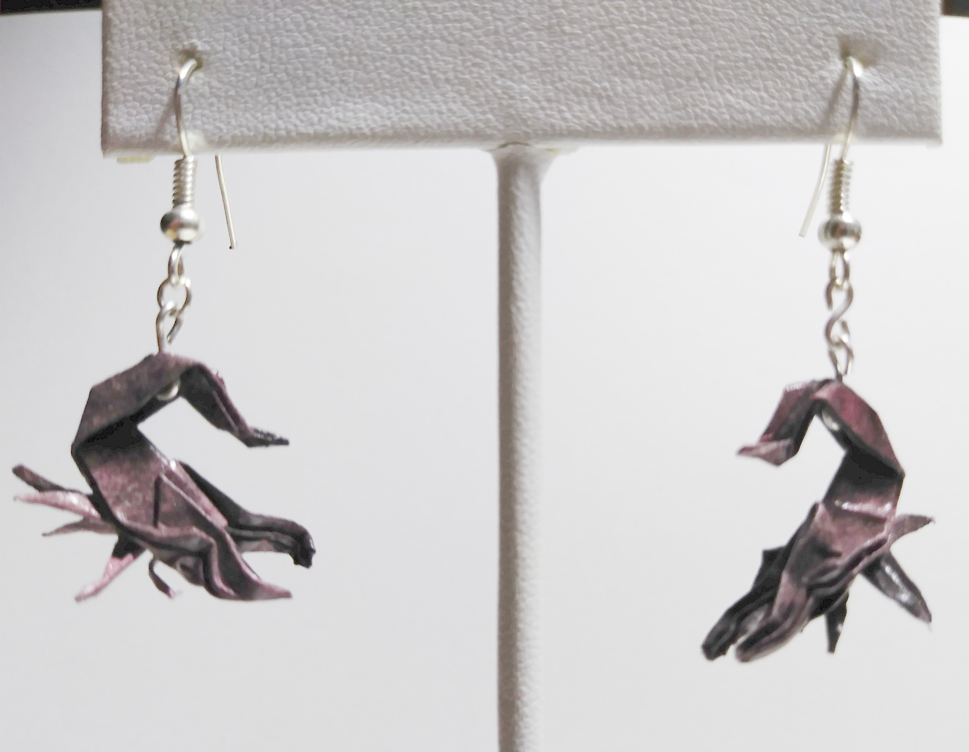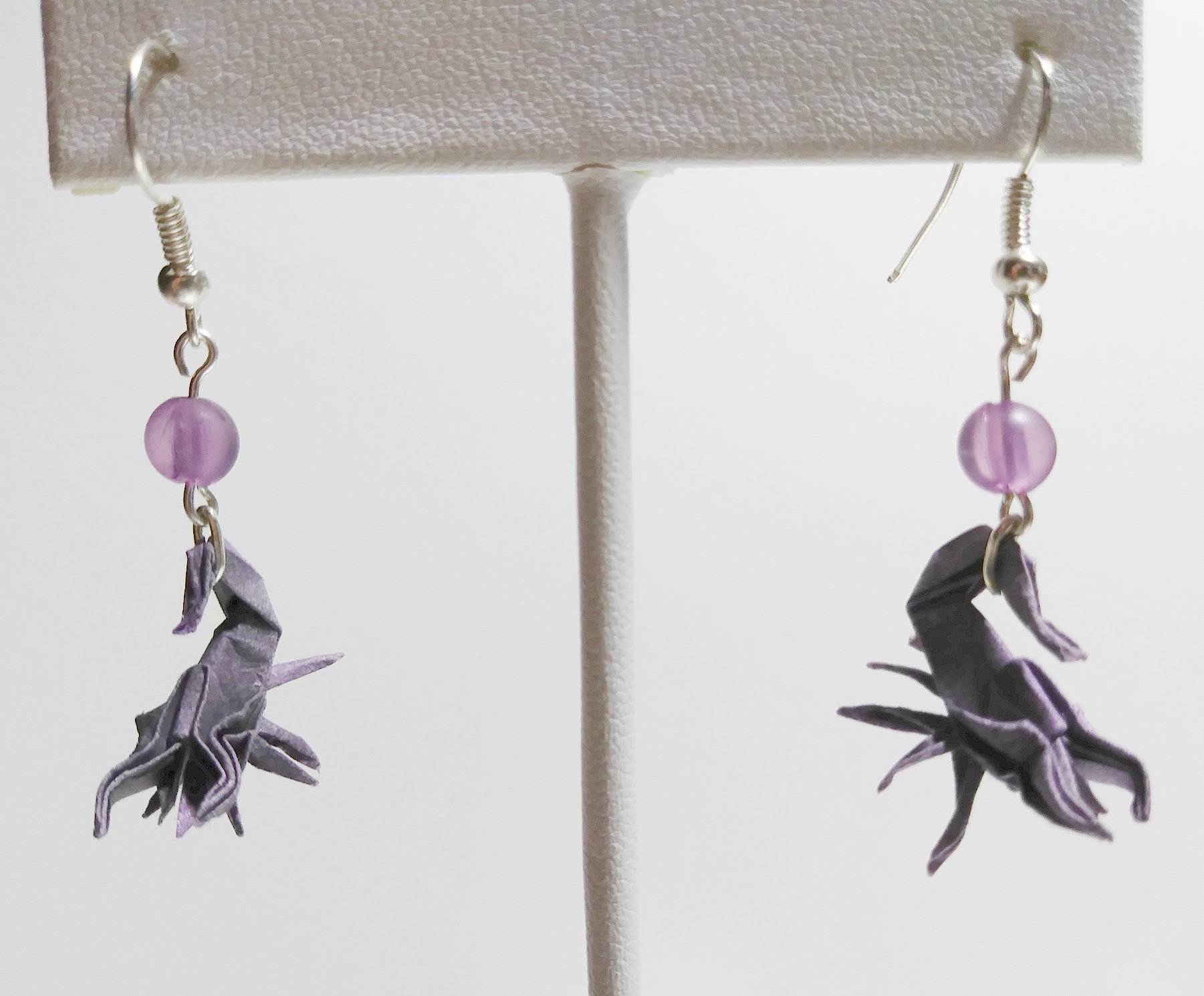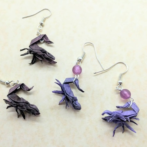 Origami Scorpion earrings. Hand-folded and treated with a sealant or varnish to make them more durable and water resistant.
