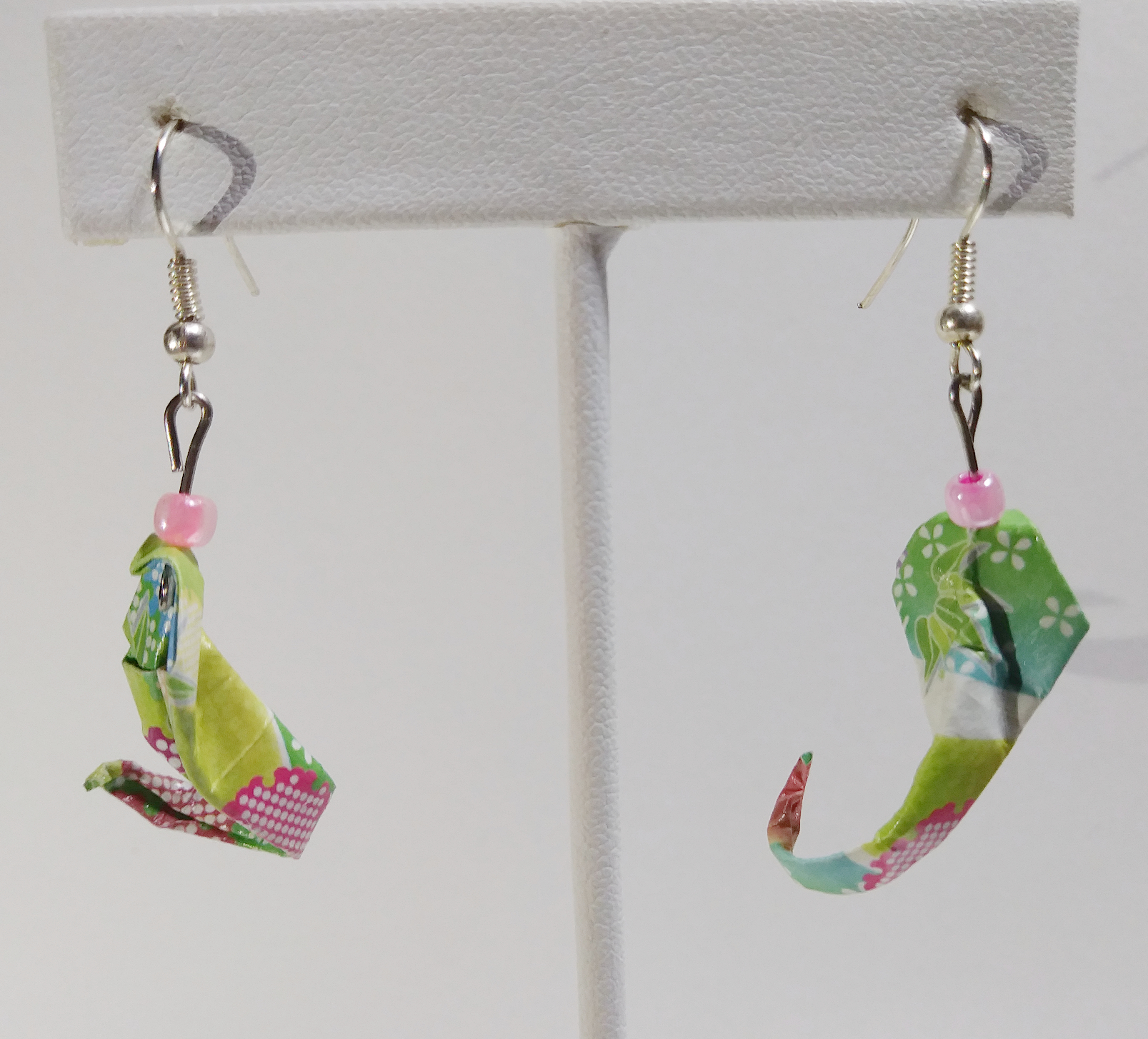 Origami Cobra earrings. Hand-folded and treated with a sealant or varnish to make them more durable and water resistant.