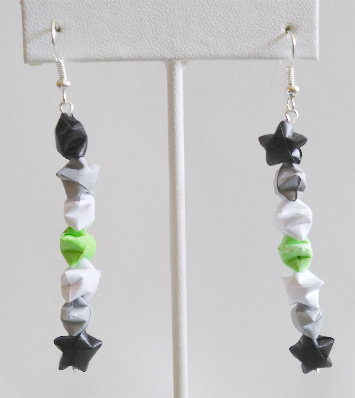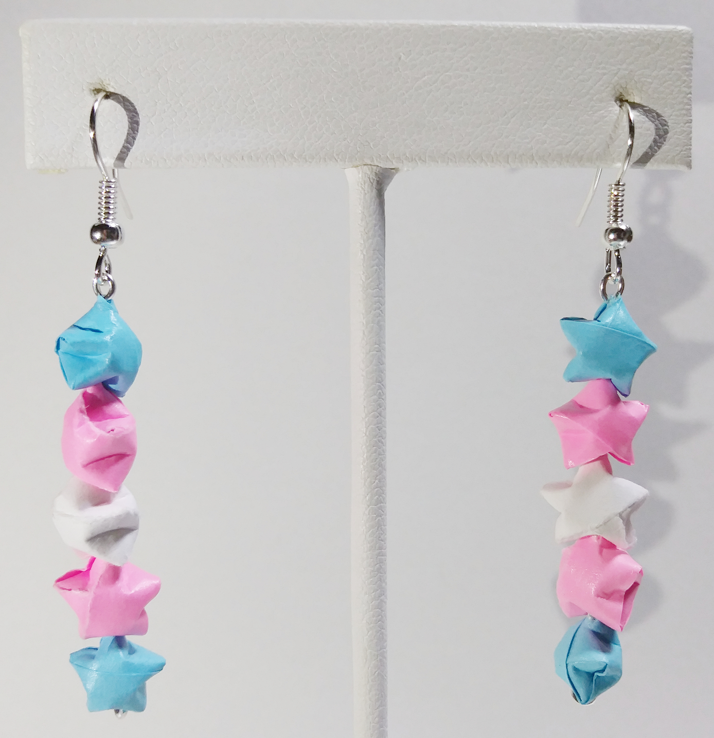 Origami Star earrings. Hand-folded and treated with a sealant or varnish to make them more durable and water resistant.