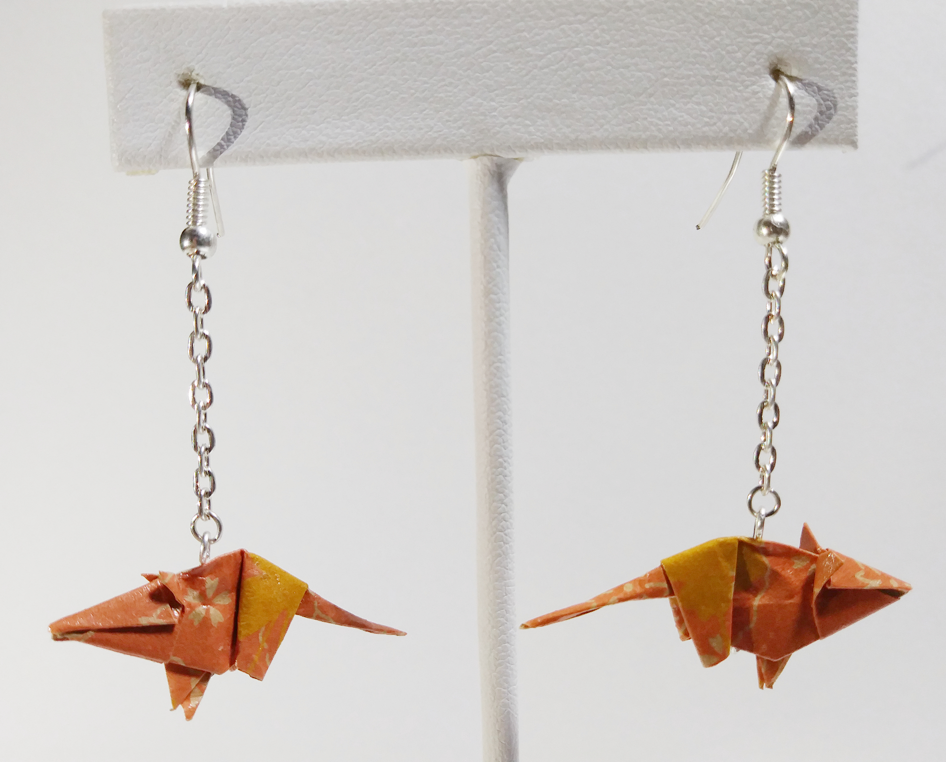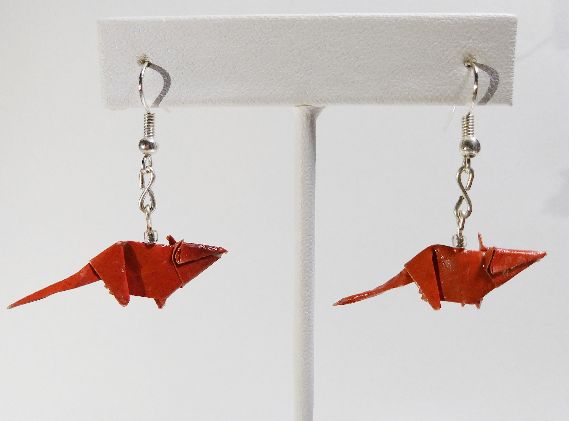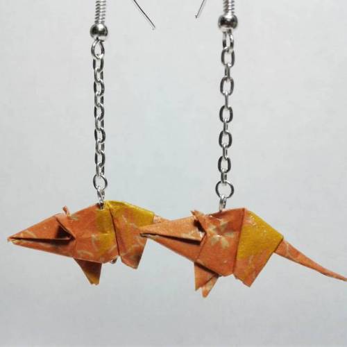 Origami Mouse earrings. Hand-folded and treated with a sealant or varnish to make them more durable and water resistant.