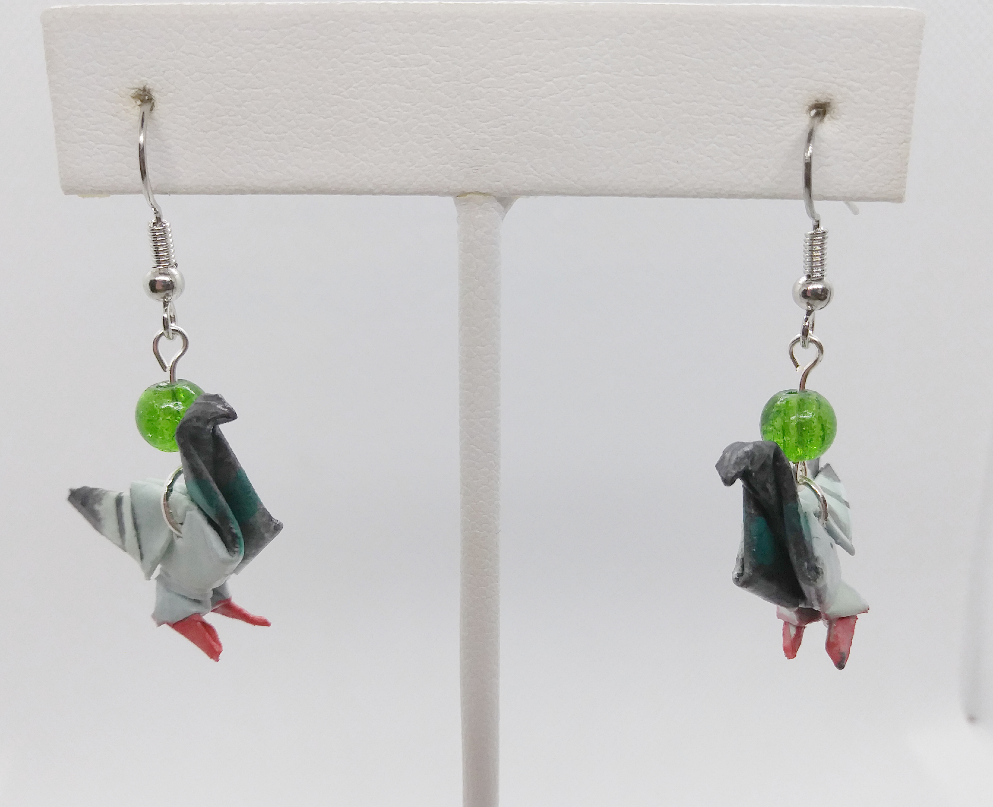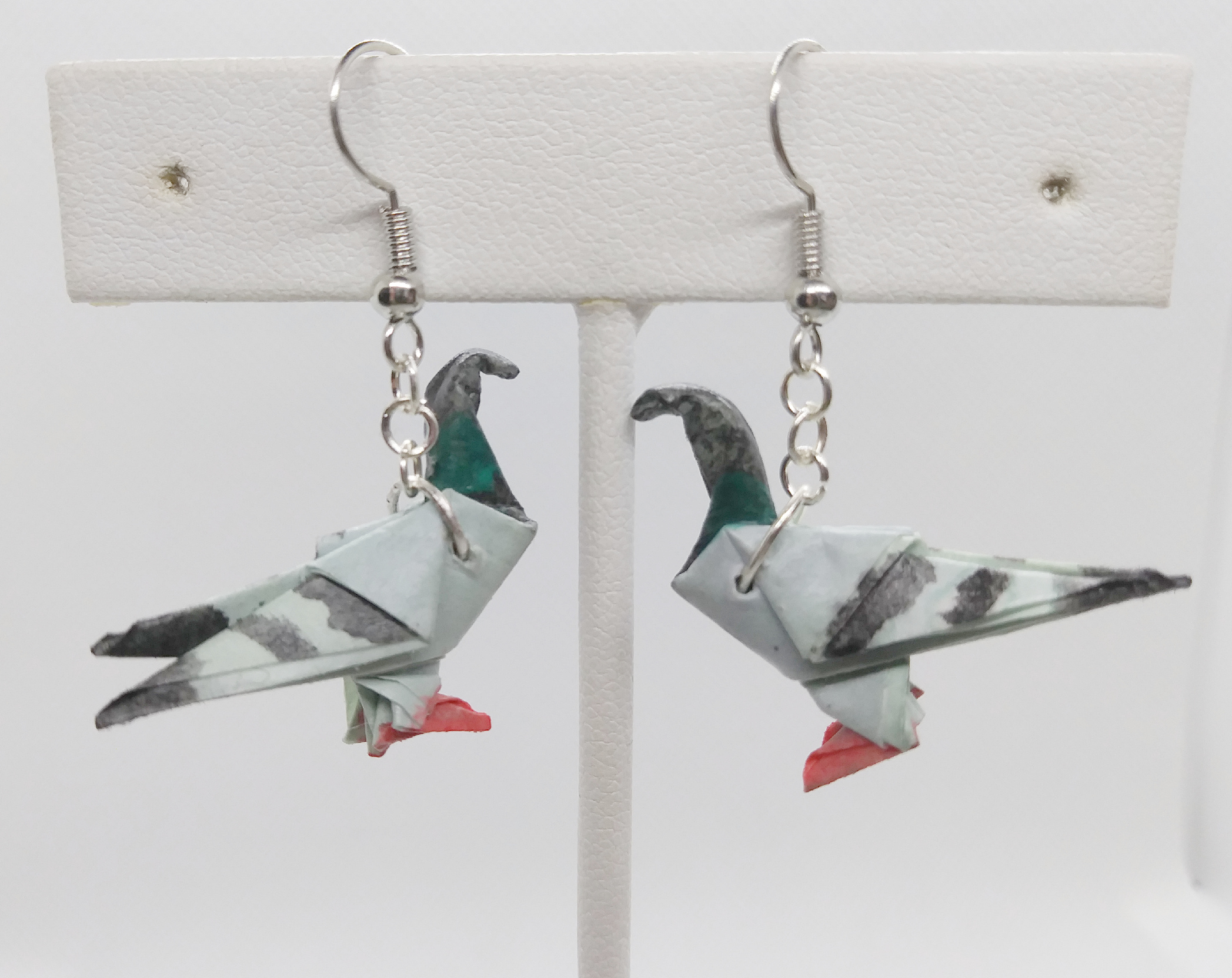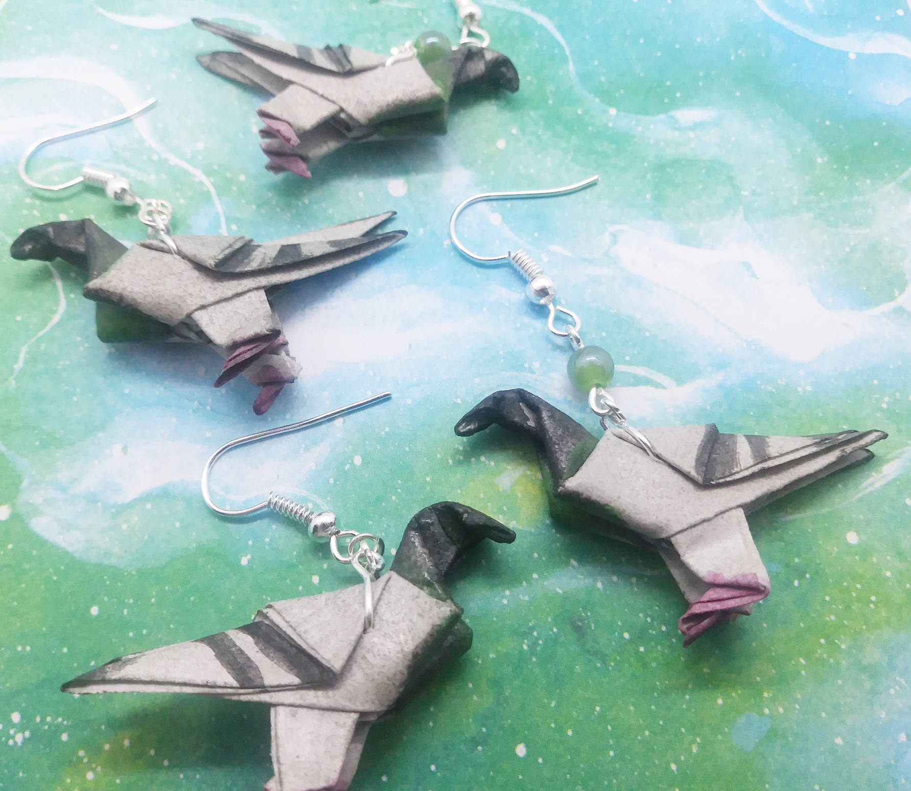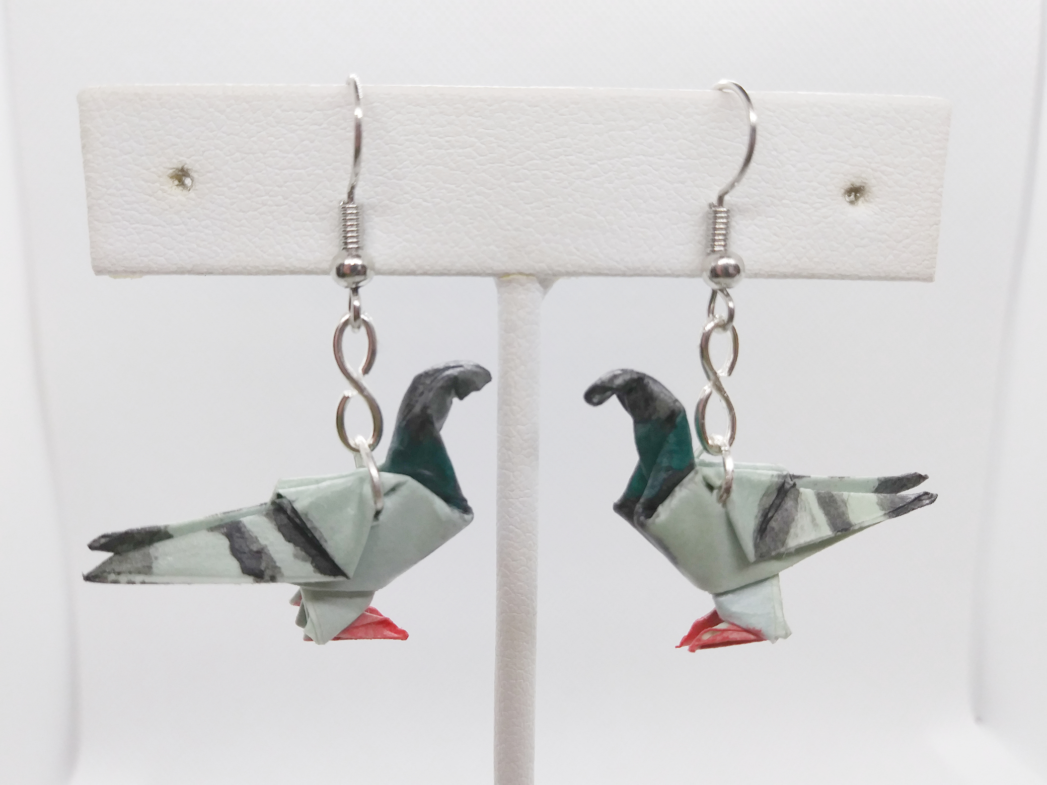 Origami Dove earrings. Hand-folded and treated with a sealant or varnish to make them more durable and water resistant.