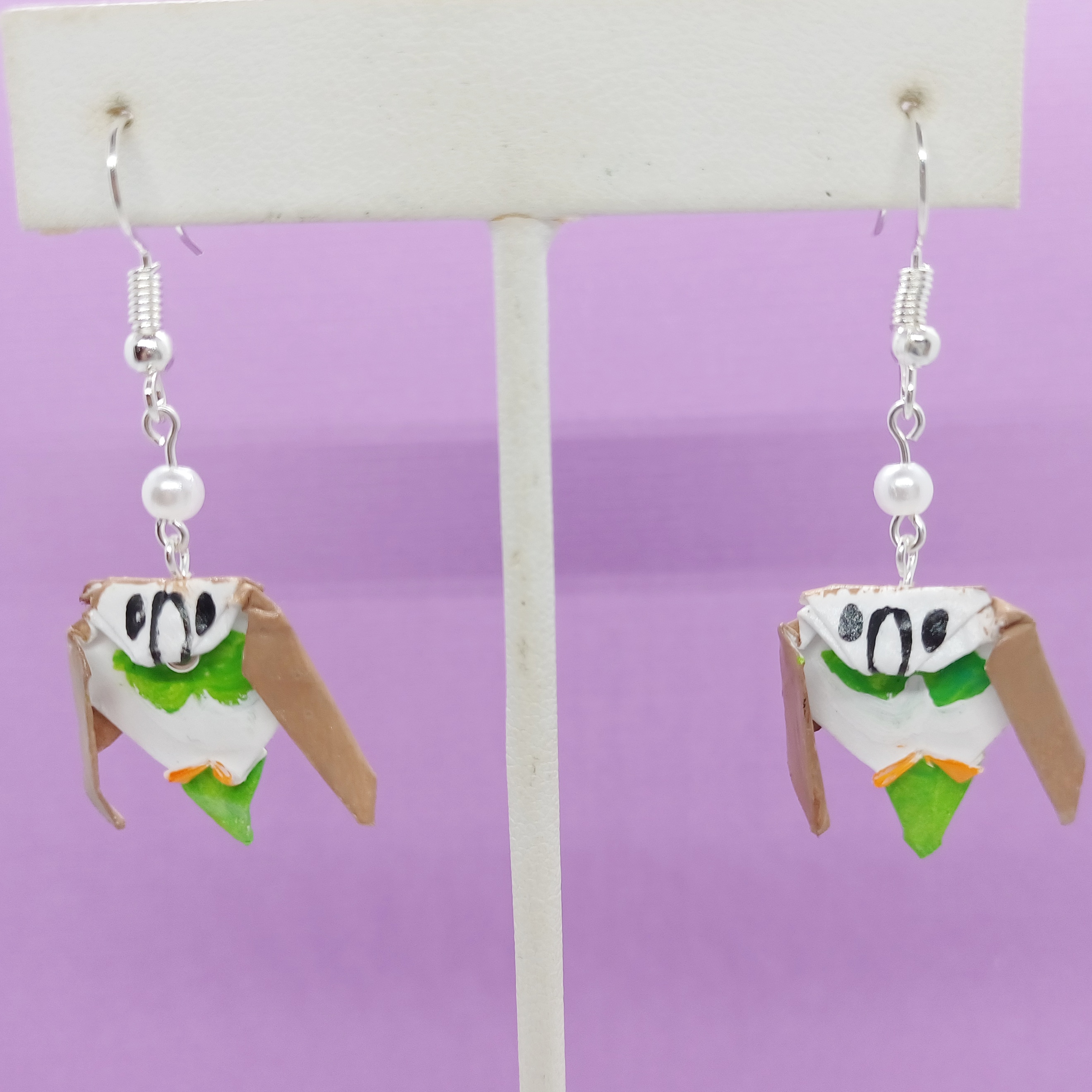 Origami earrings. Hand-folded and treated with a sealant or varnish to make them more durable and water resistant.