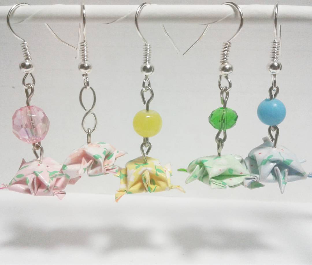 Origami Turtle earrings. Hand-folded and treated with a sealant or varnish to make them more durable and water resistant.