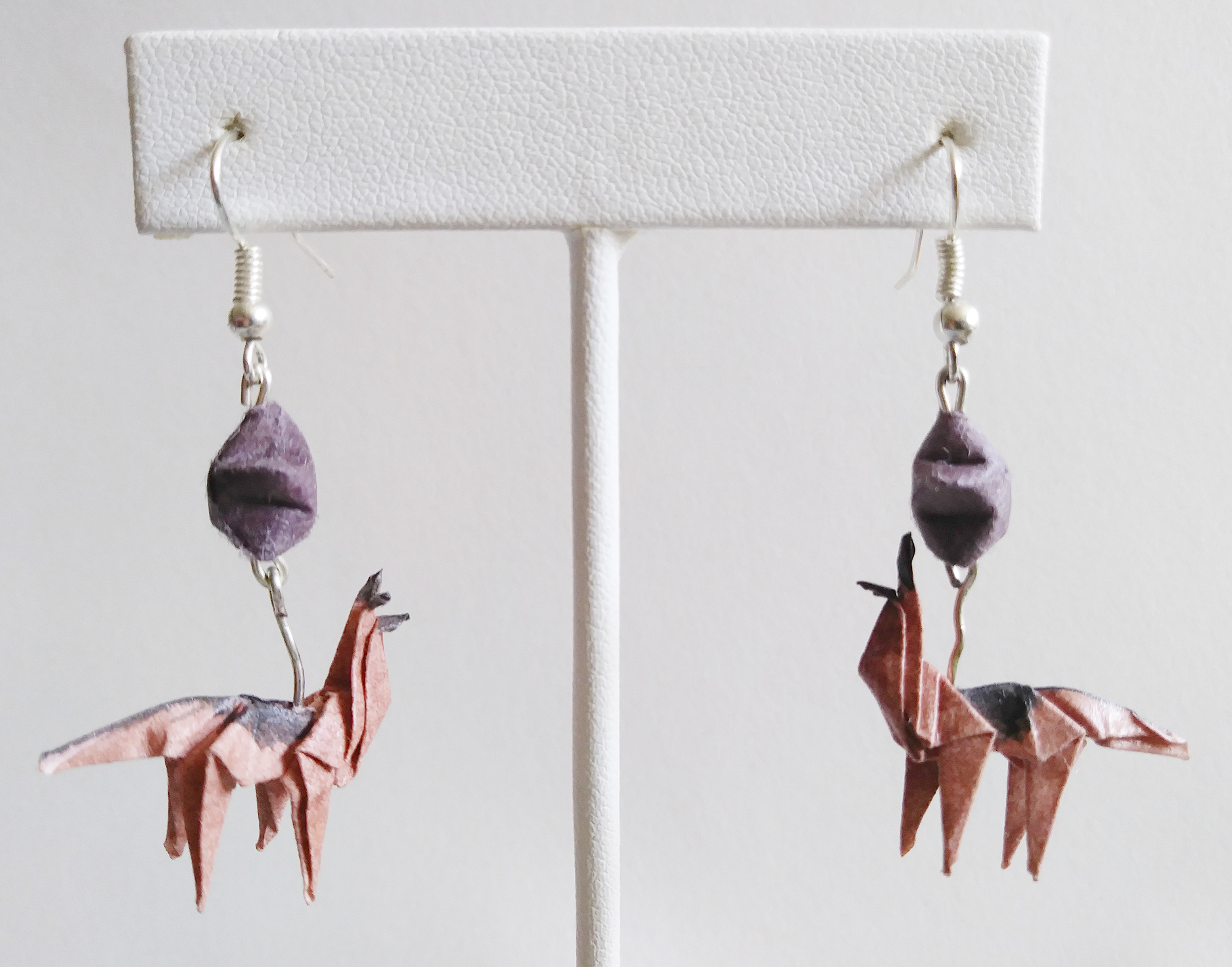 Origami German Shepherd earrings. Hand-folded and treated with a sealant or varnish to make them more durable and water resistant.