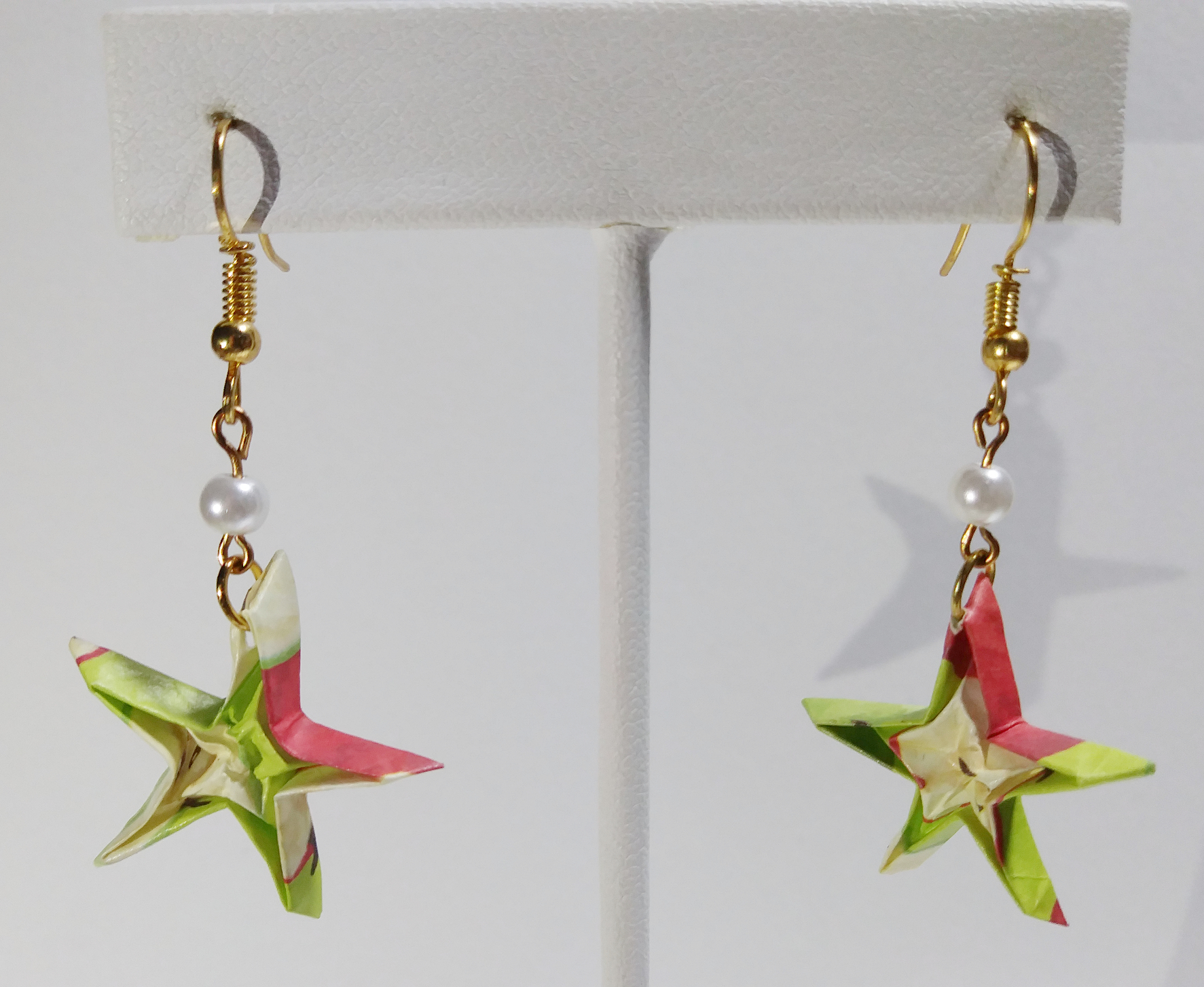 Origami Starfish earrings. Hand-folded and treated with a sealant or varnish to make them more durable and water resistant.
