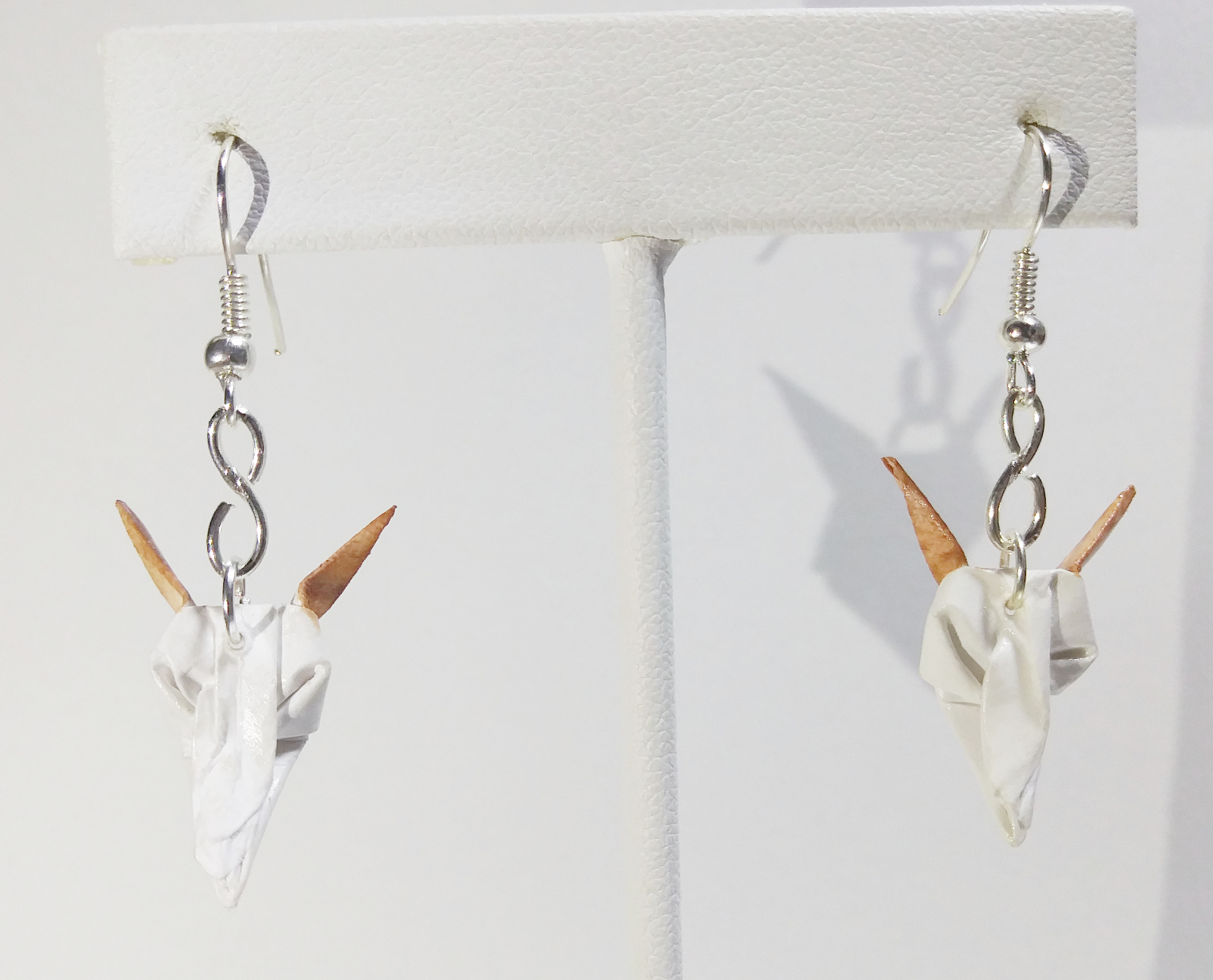 Origami Cow Skull earrings. Hand-folded and treated with a sealant or varnish to make them more durable and water resistant.