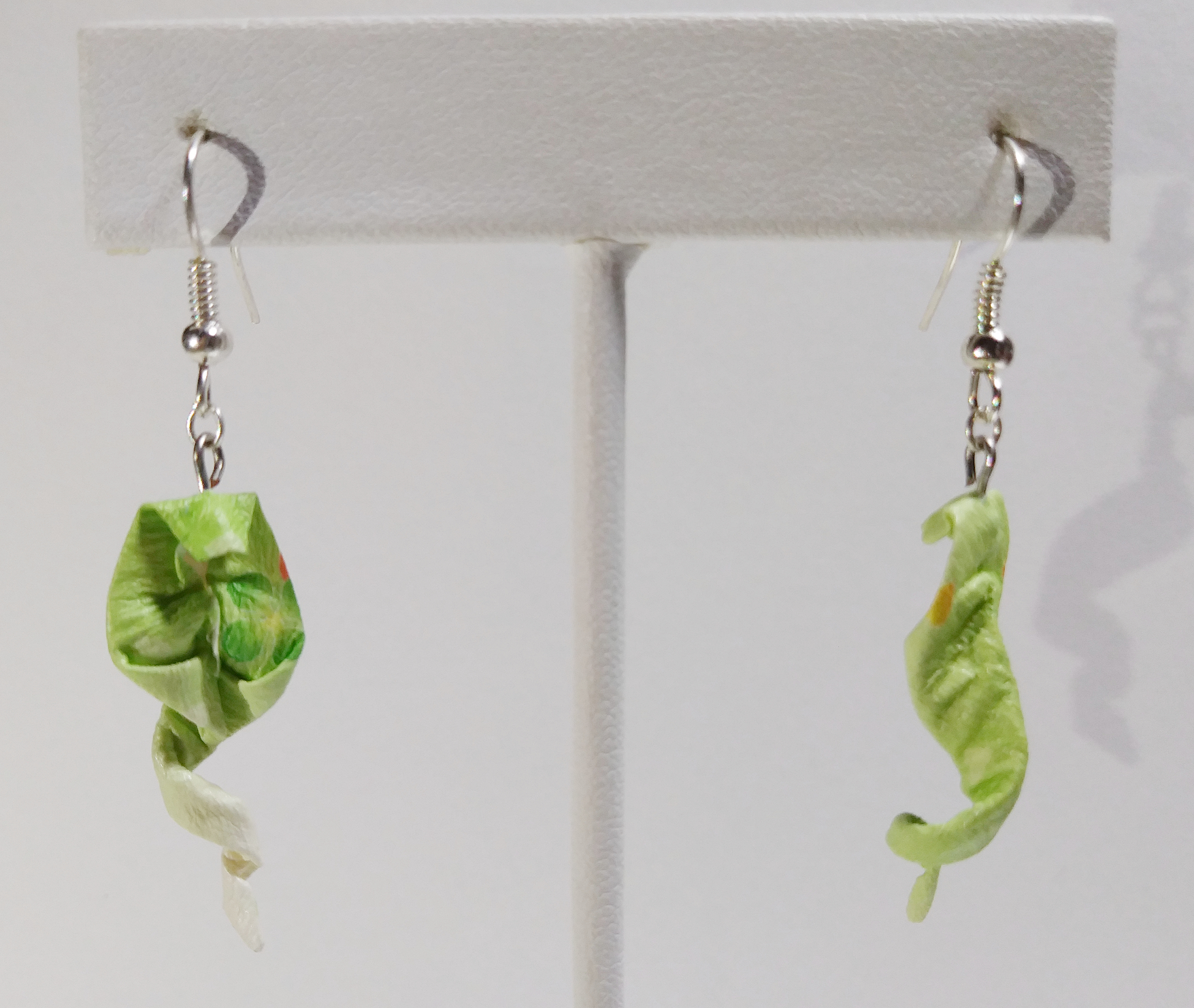 Origami Cobra earrings. Hand-folded and treated with a sealant or varnish to make them more durable and water resistant.