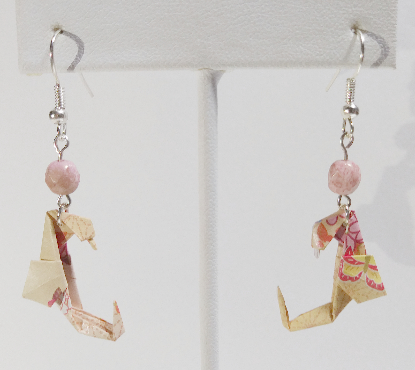 Origami Seahorse earrings: Tan floral