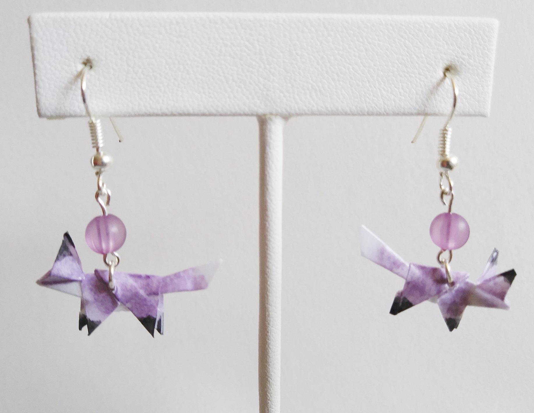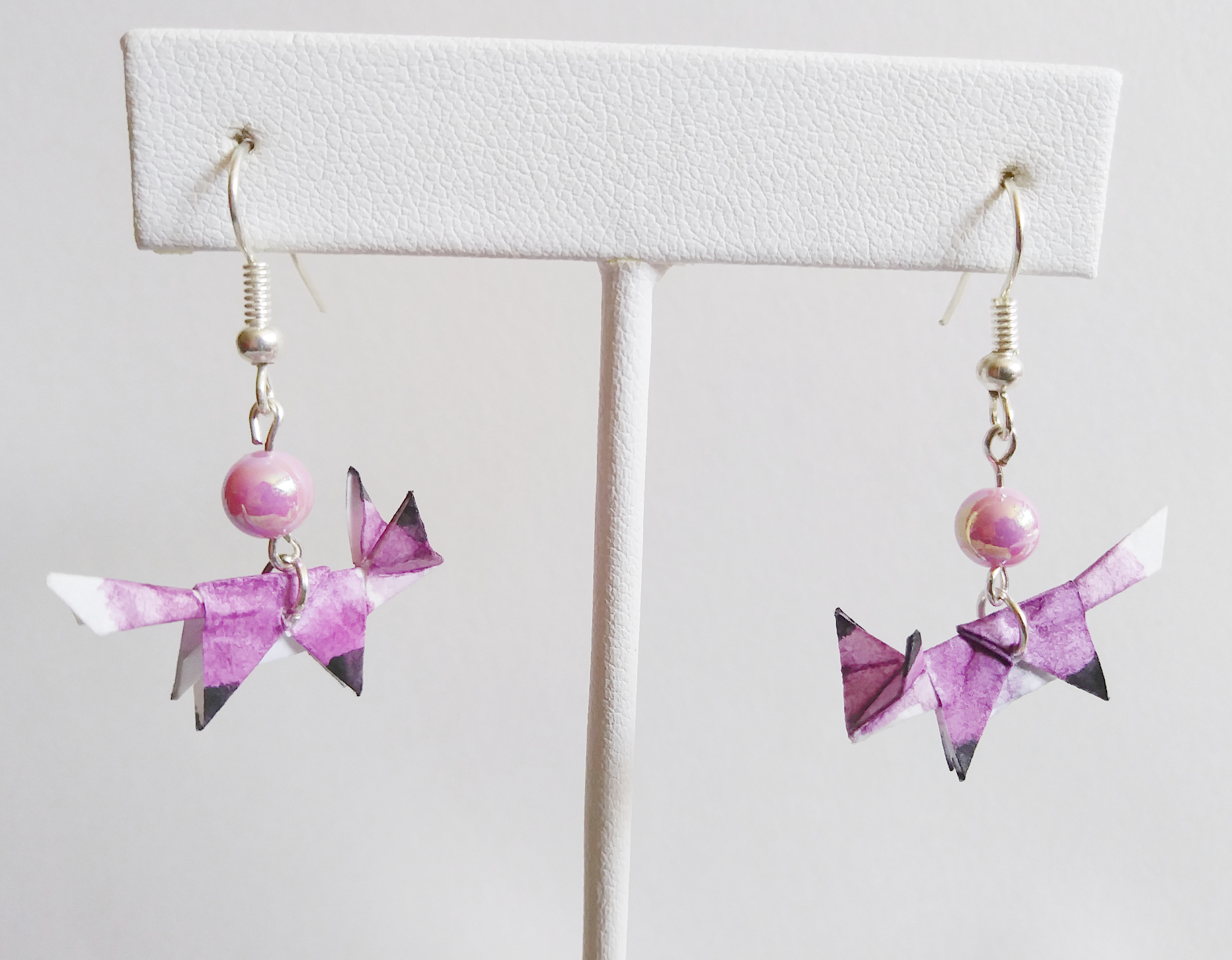 Origami Fox earrings. Hand-folded and treated with a sealant or varnish to make them more durable and water resistant.