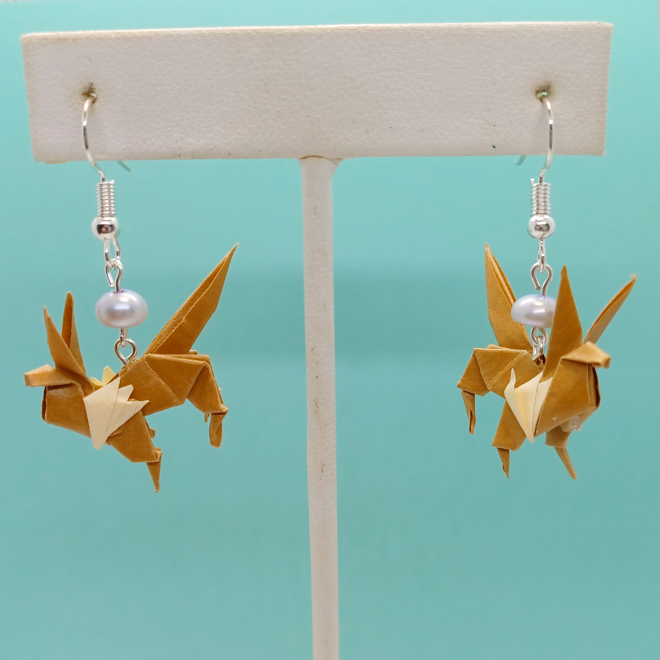 Origami Eevee earrings. Hand-folded and treated with a sealant or varnish to make them more durable and water resistant.