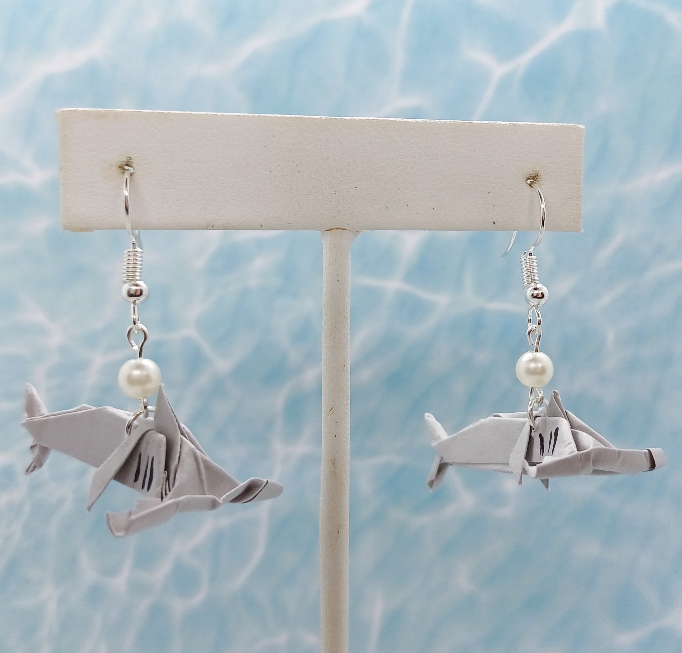 Origami shark earrings. Hand folded from paper and treated with a varnish. Lead and Nickle free. The product is made to order and may look different from the photo.