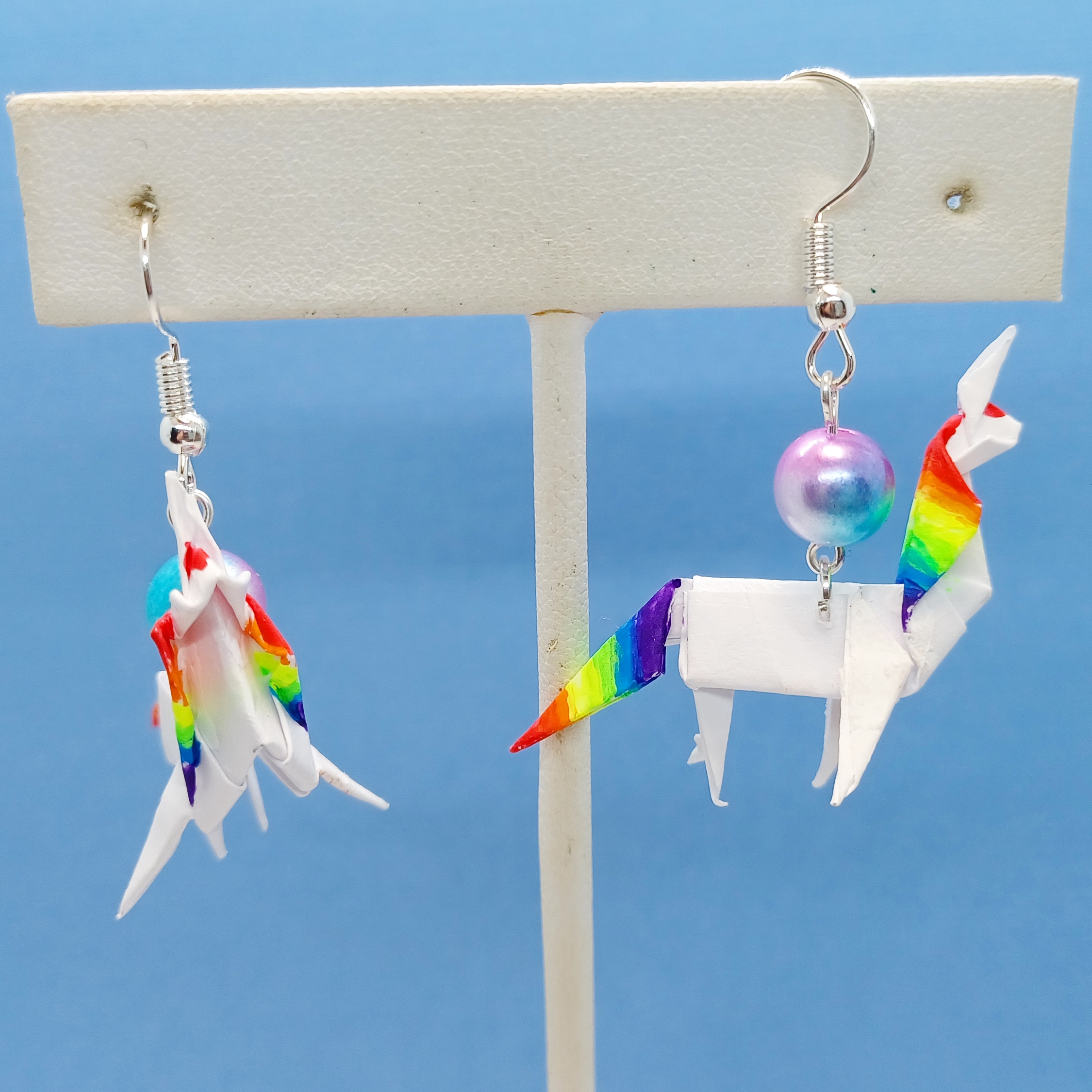 Origami Unicorn earrings: Rainbow