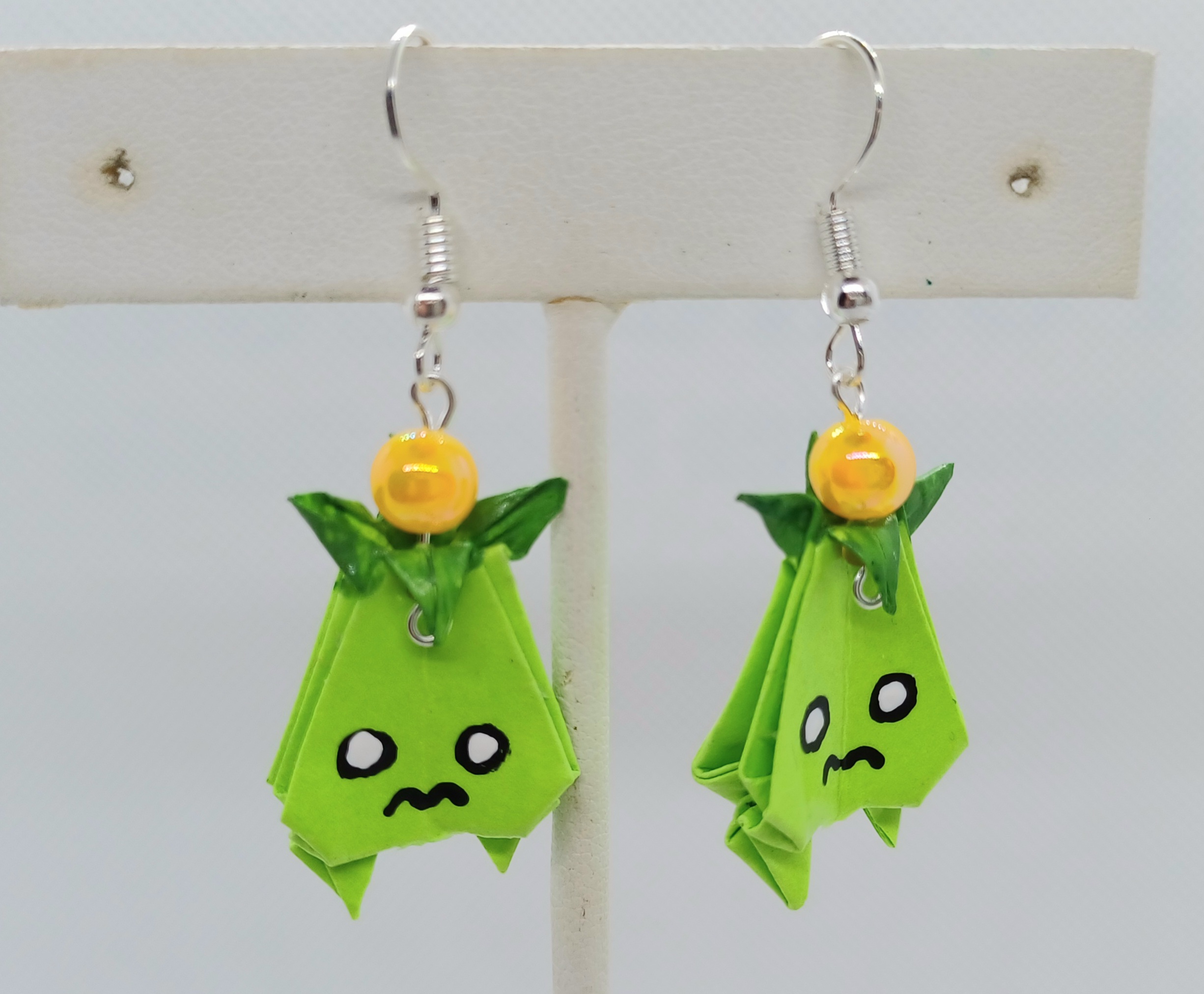 Origami Smoliv earrings. Hand-folded and treated with a sealant or varnish to make them more durable and water resistant.