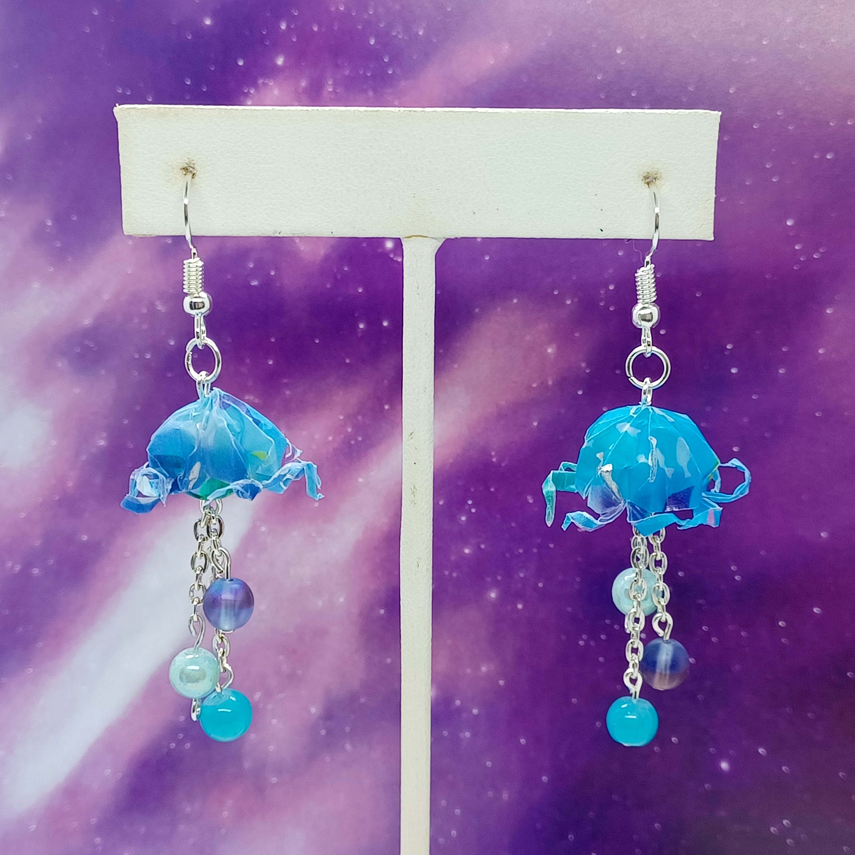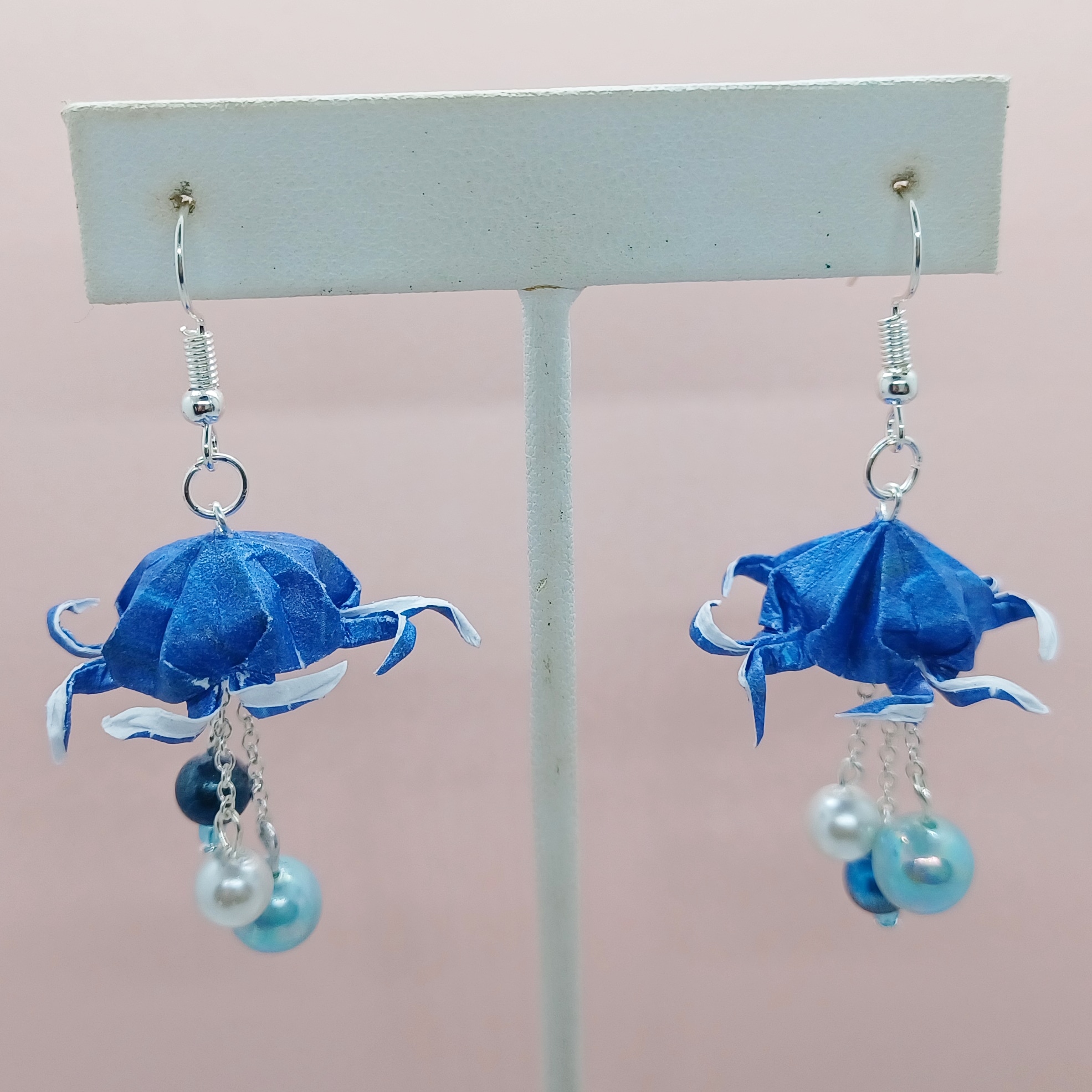 Origami Jellyfish earrings. Hand-folded and treated with a sealant or varnish to make them more durable and water resistant.