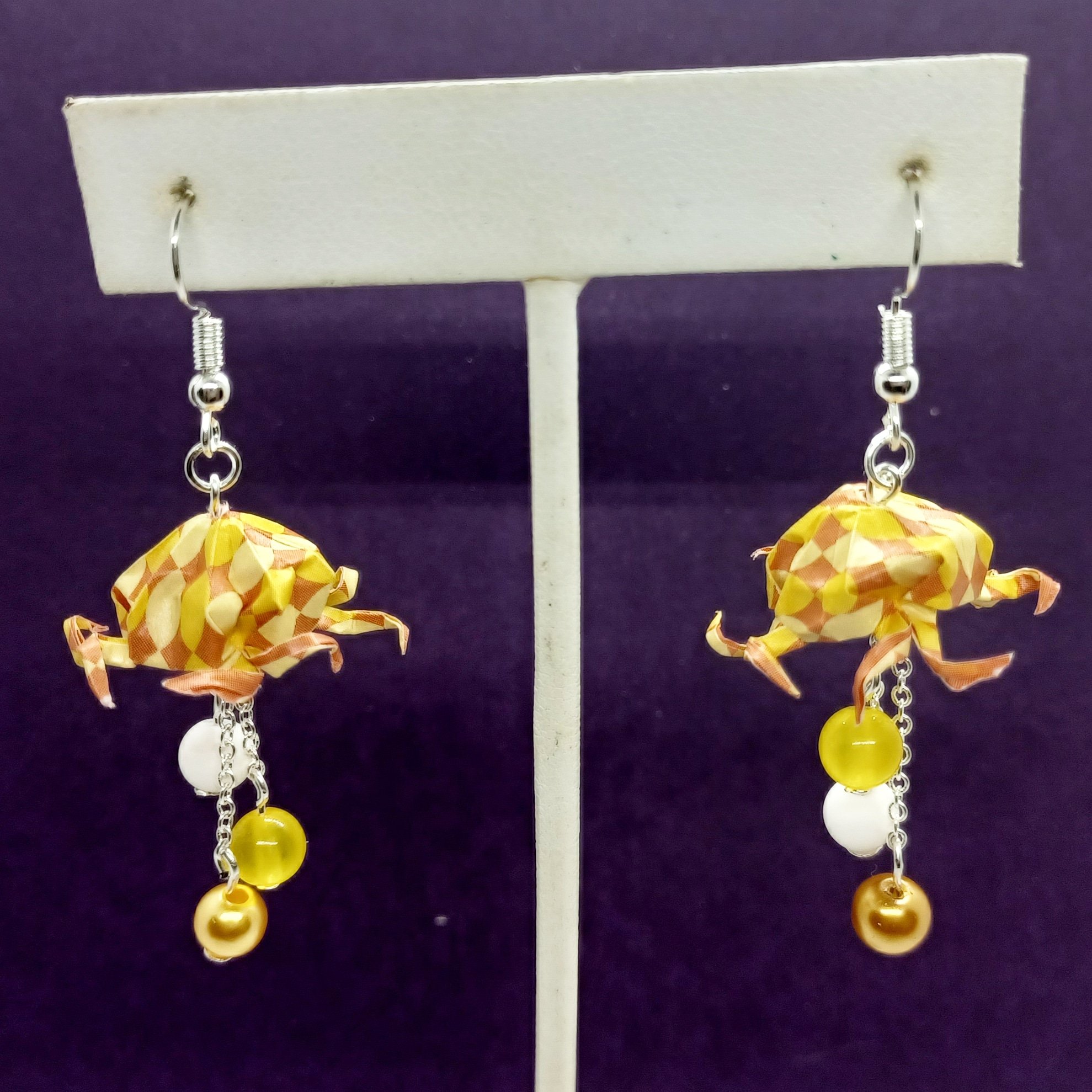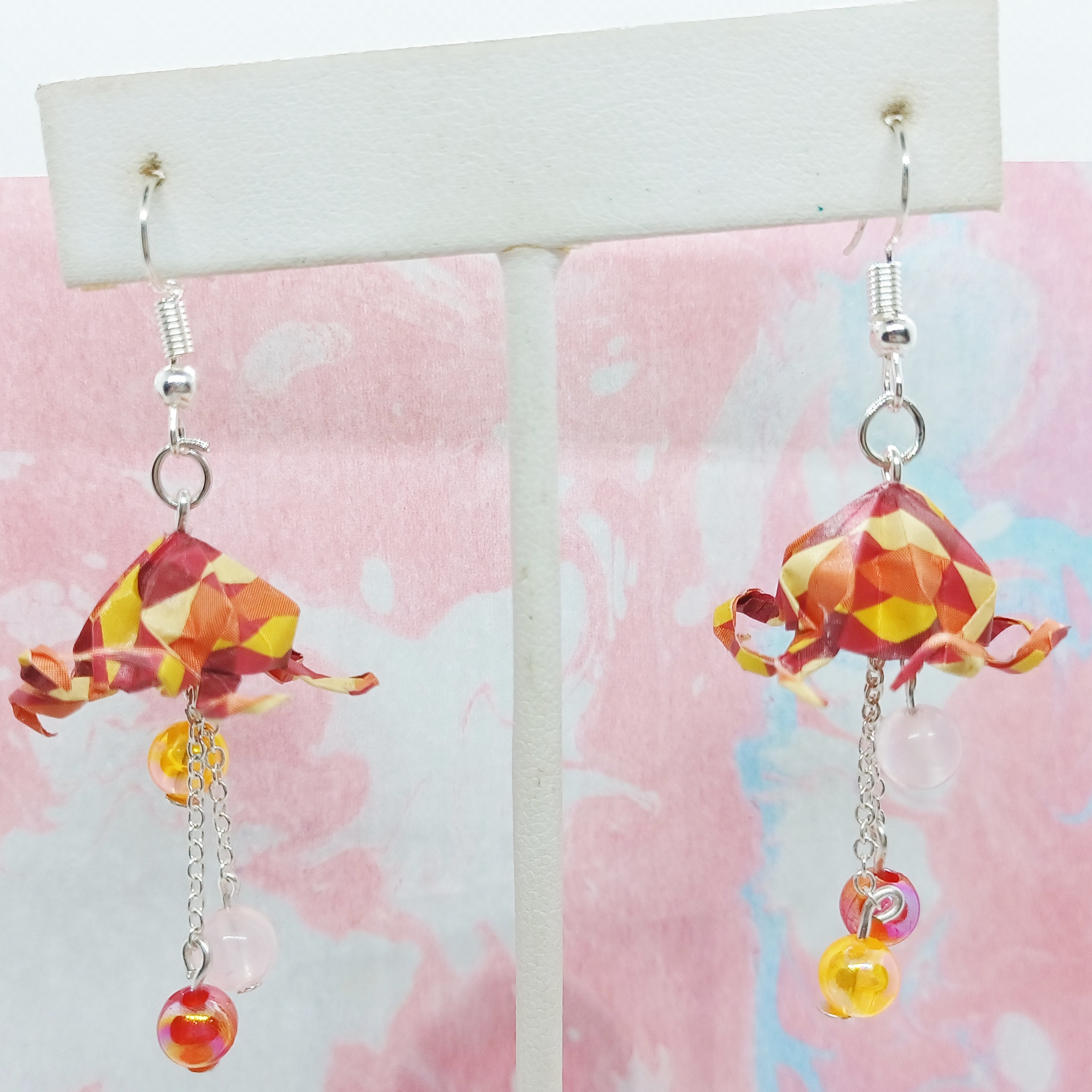 Origami Jellyfish earrings. Hand-folded and treated with a sealant or varnish to make them more durable and water resistant.